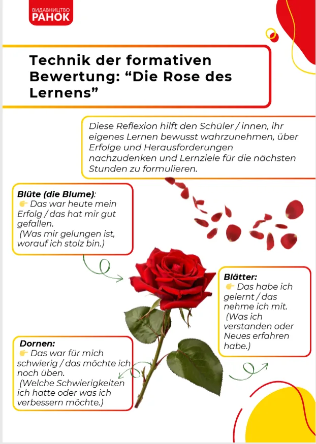 Більше технік формувального оцінювання ви можете знайти у розробці “Formative Bewertung im Deutschunterricht”.