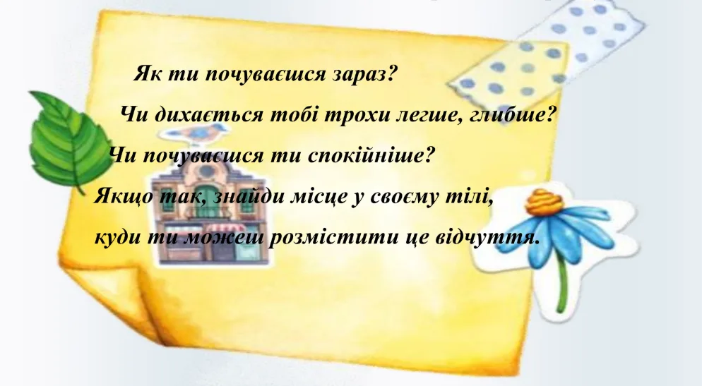 Мета. Створити відчуття безпеки. Допомогти нервовій системі впоратися зі стресом.