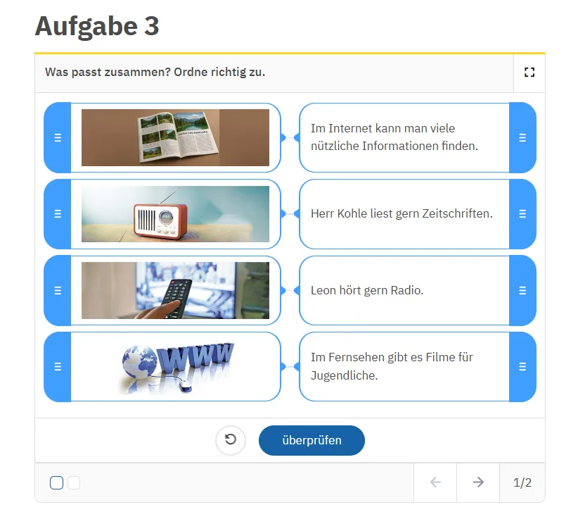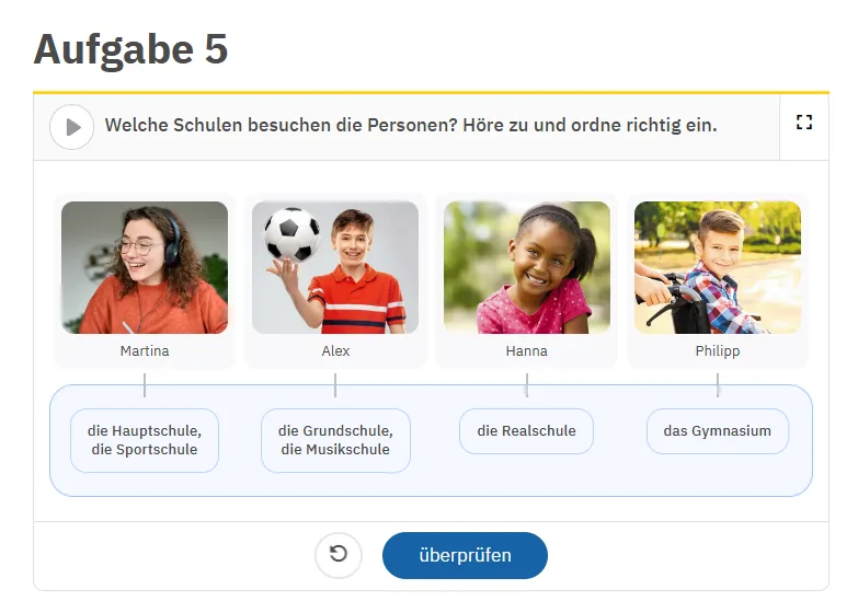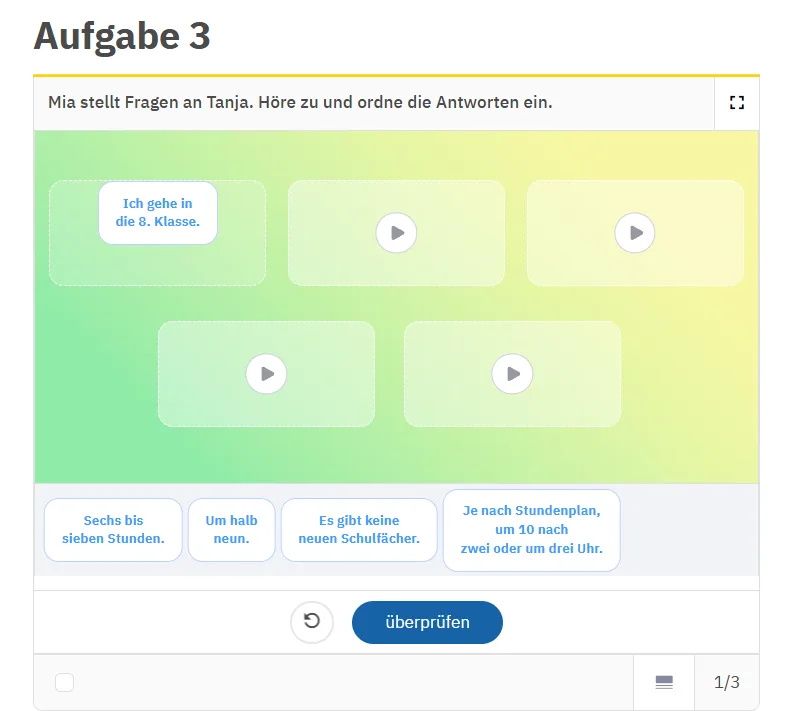 Освітня платформа іЗЗі пропонує різноманітні цифрові завдання, які дають змогу органічно поєднувати підручник з онлайн–інструментами та роблять уроки німецької мови більш ефективними й цікавими.