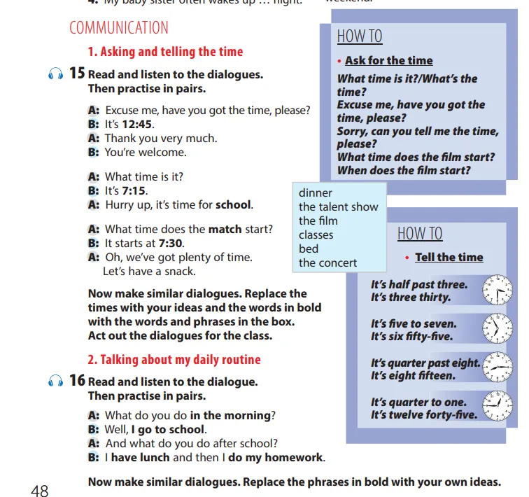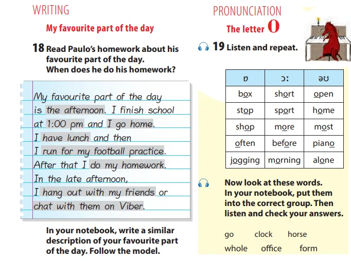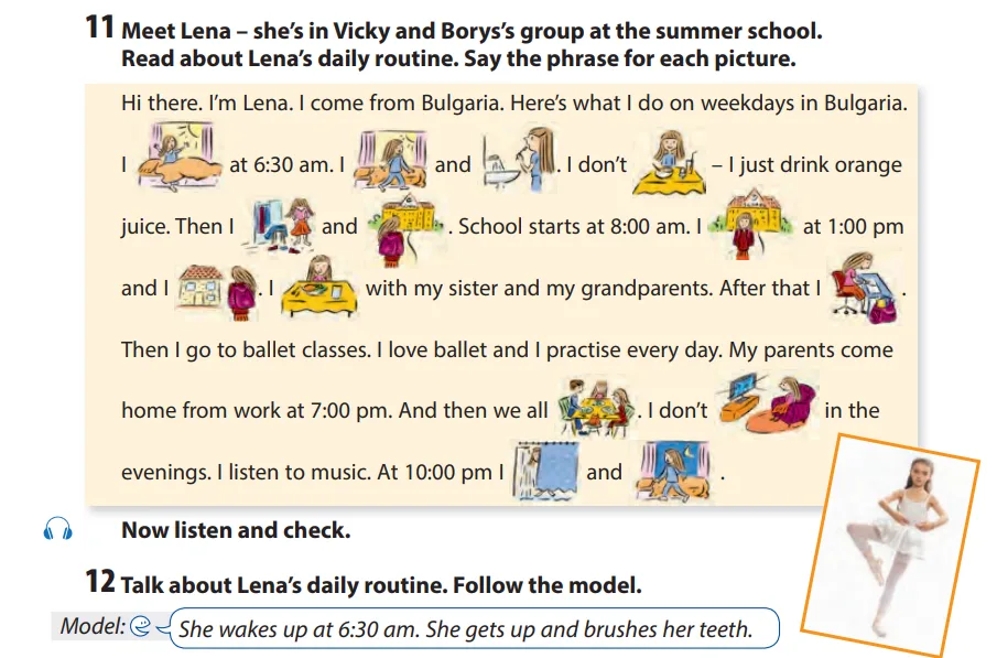 У підручнику «Hip-Hip Hello» для 5 класу тема «My daily routine» подана через опис рутини Лени з Болгарії: